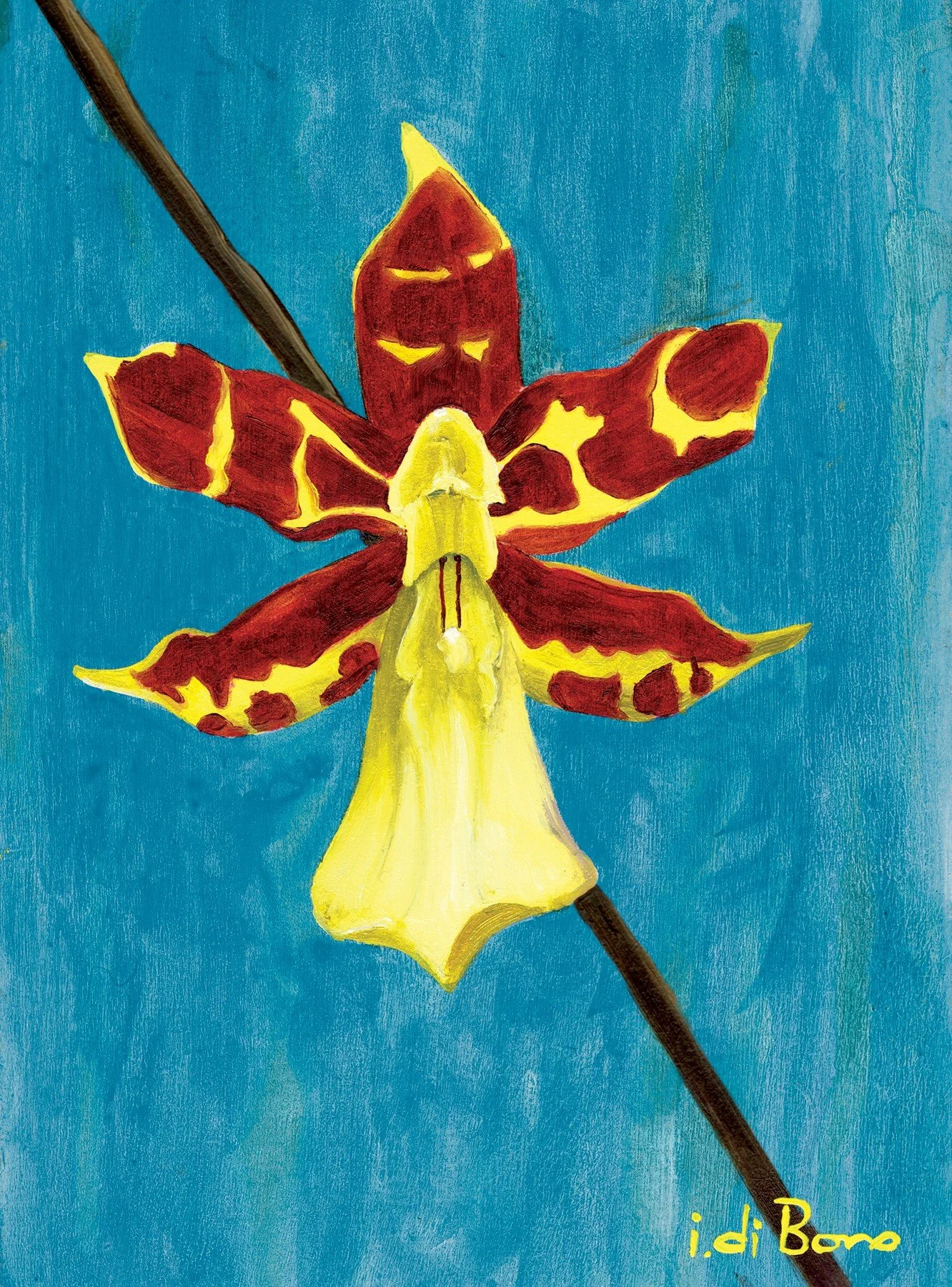 Leaving her family in Honduras—her Italian father from California, her businesswoman mother, and her two younger sisters, Di Bono moved to America to attend Notre Dame, and remains here after attaining her Bachelor of Fine Arts. Although she began as an economics major, she quickly realized that her passion and her need for self-care led her to create art. She characterizes her early understanding of the artist's world as naïve, she persevered with the visual language of the cloud forest: its diversity, interdependence, and freedom.